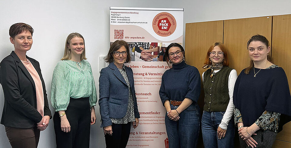 Begleitet wurde der Besuch von Katja Fischer vom DRK Sachsen-Anhalt und Cécilia Kampschulte und Anna Kurth vom Team des Engagementzentrums Bernburg. Sie gaben Einblicke in die Arbeit vor Ort und in die Rolle des Zentrums innerhalb der landesweiten Engagementstrategie.